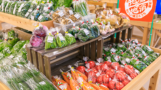 スーパーマーケットの中に誕生した、採れたて野菜の生産者直売所「四万十いちば」。トマトやショウガなど、地元四万十町の農家さんたちが持ち寄った新鮮な野菜が毎日並びます。四万十みやげに…と、観光客からも人気のコーナー。登録農家さんの数は四万十で1番。手作り惣菜も人気です。